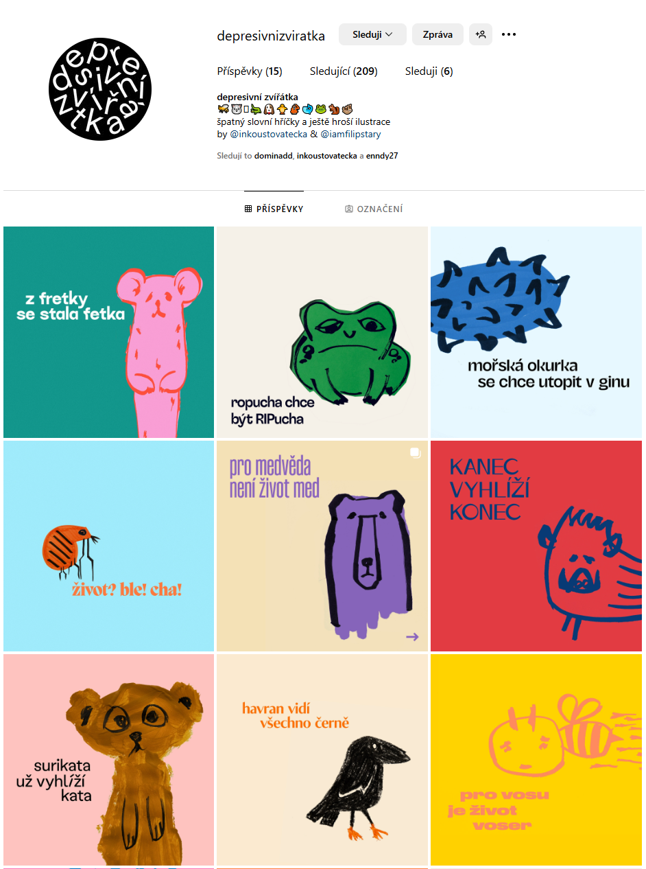 jsme spojili síly a vymysleli koncept ne úplně psychicky stabilních zvířátek. Já se postaral o ilustrace a grafiku a Martina o skvělé copy.