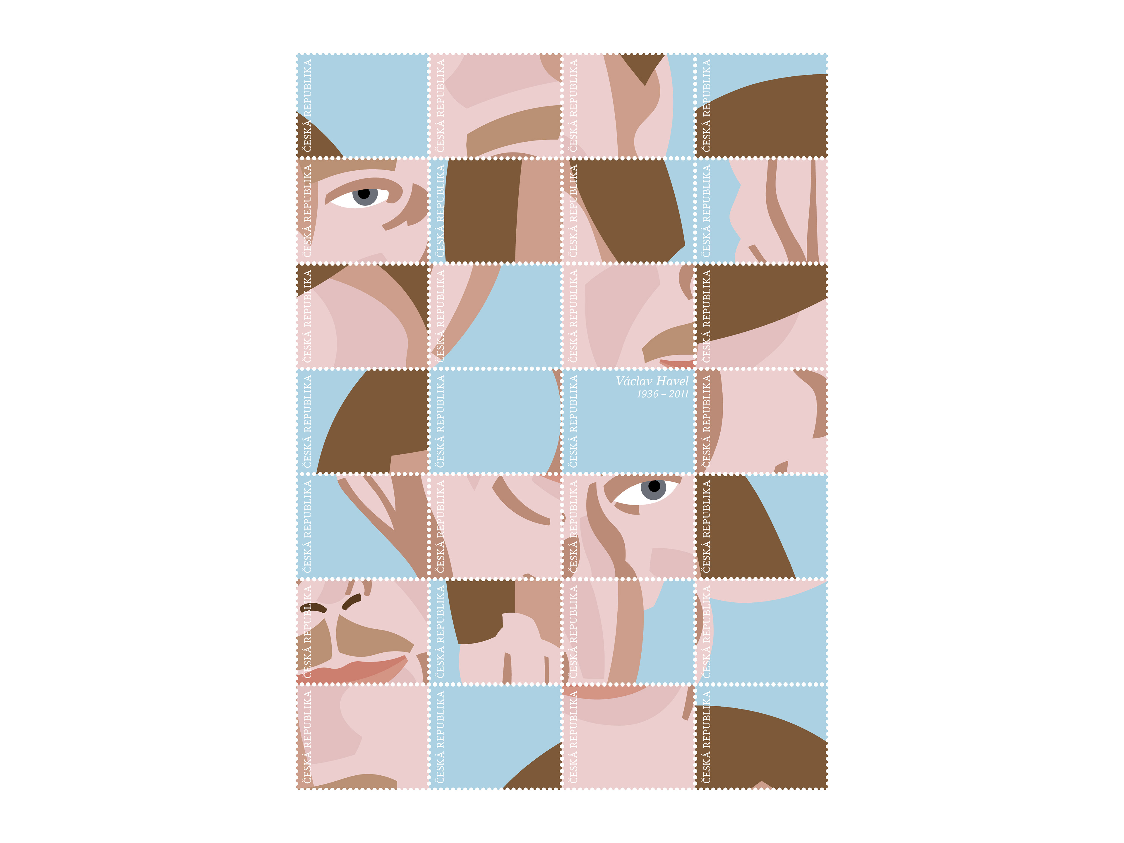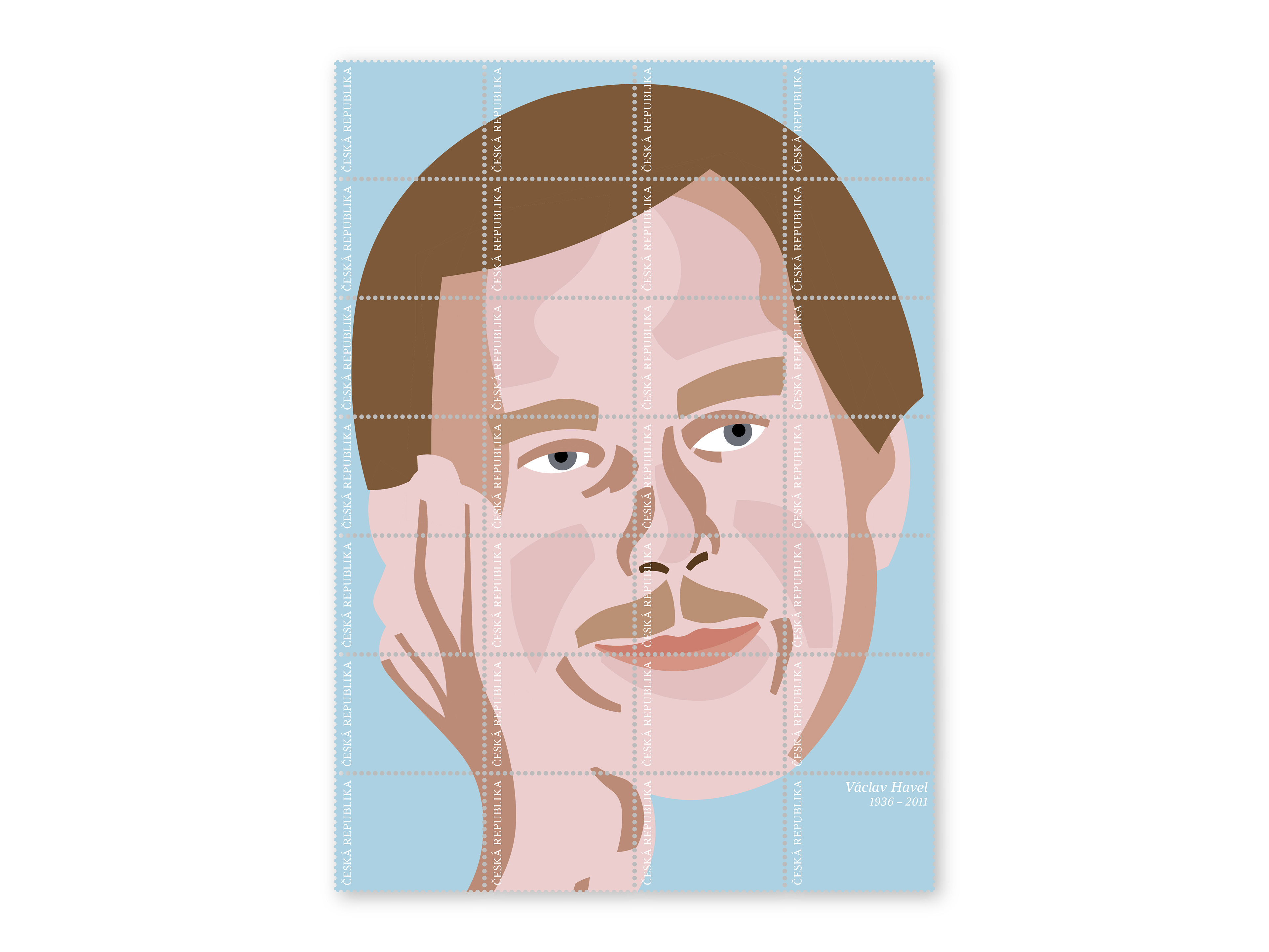 Poštovní známky s portrétem prvního prezidenta České republiky – Václava Havla.
